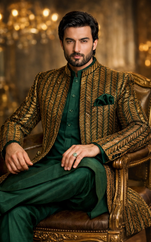 Explore our luxurious menswear, including sherwanis, prince coats, and waistcoats. Find vibrant womenswear and stylish Eid collections for every celebration. Accessorize your look with our premium selection of bags, jewelry, and more. Perfectly curated outfits to make every occasion memorable and elegant