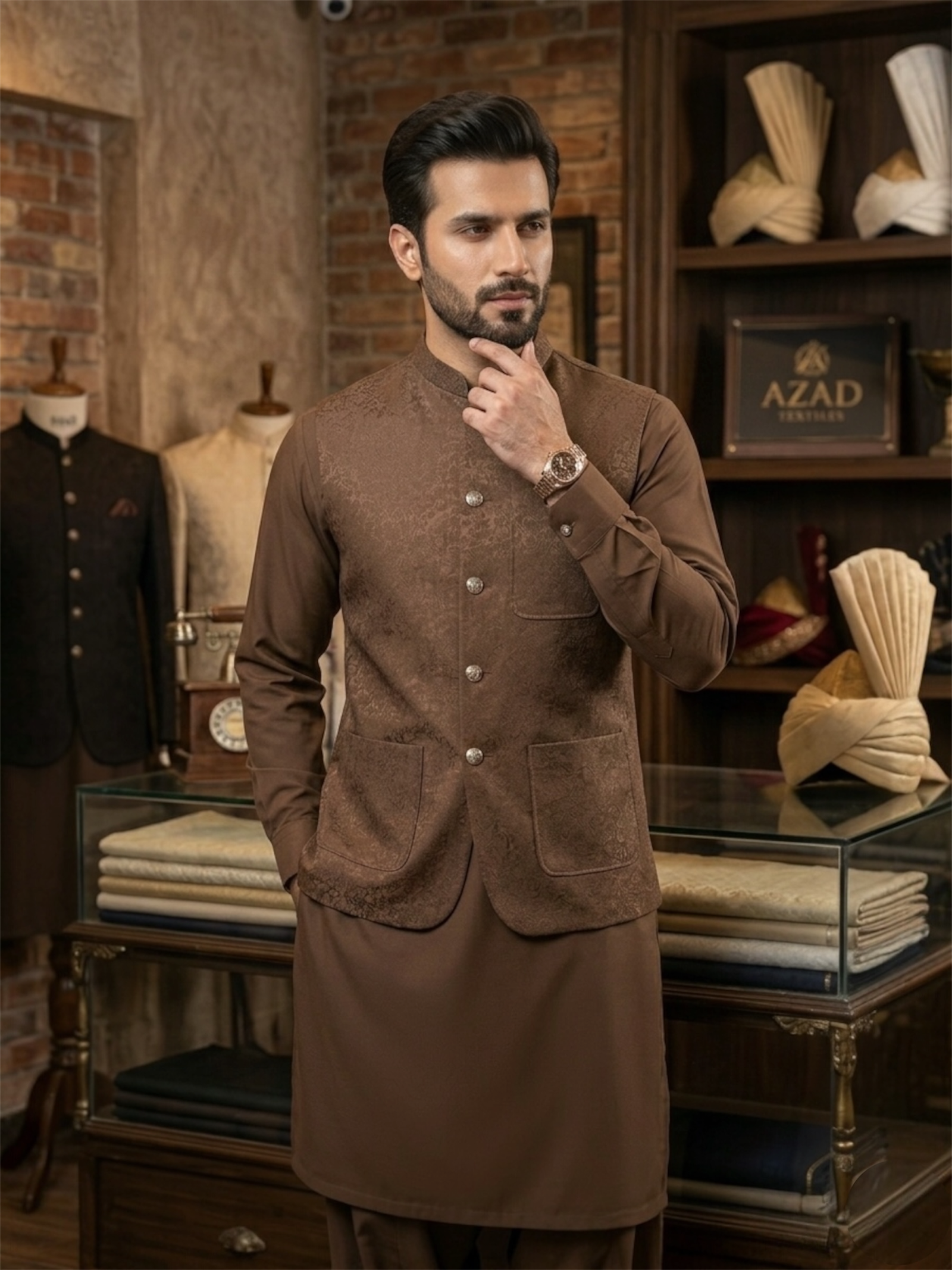 Upgrade your formal wardrobe with this elegant classic waistcoat from Diffusion Boutique. Designed with high-quality fabric and a tailored fit, this piece delivers both comfort and style. Its sleek cut enhances your overall appearance, making it ideal for weddings, formal gatherings, and traditional events. Pair it with a shalwar kameez or dress pants for a refined and polished look. Durable stitching and premium finishing ensure long-lasting wear.